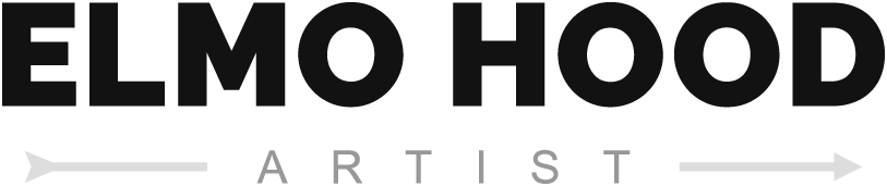 Elmo Hood is a self-taught artist who creates mixed media art combining pop culture, emotion, and symbolism, with a signature style using playing cards and collage.